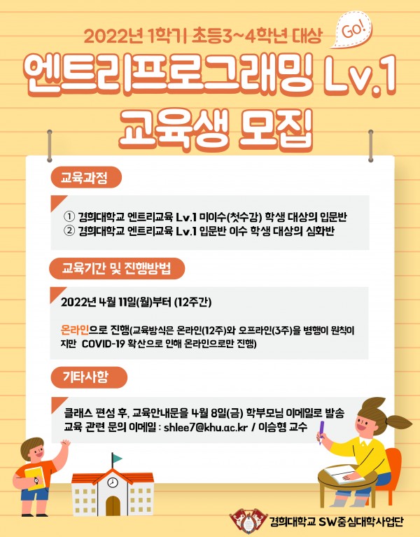 [마감] 2022년 1학기 초등3~4학년 대상/엔트리프로그래밍 Lv.1 교육생 모집