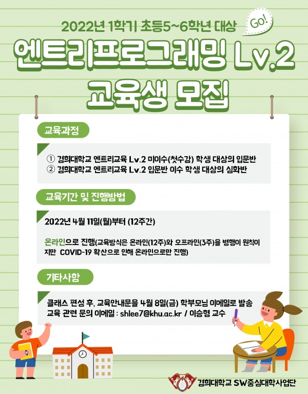 [마감] 2022년 1학기 초등5~6학년 대상/엔트리프로그래밍 Lv.2 교육생 모집