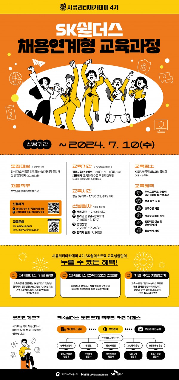 [홍보] [KISIA] 시큐리티아카데미 4기 SK쉴더스트랙 교육생 모집 (추가모집 : ~7/21)