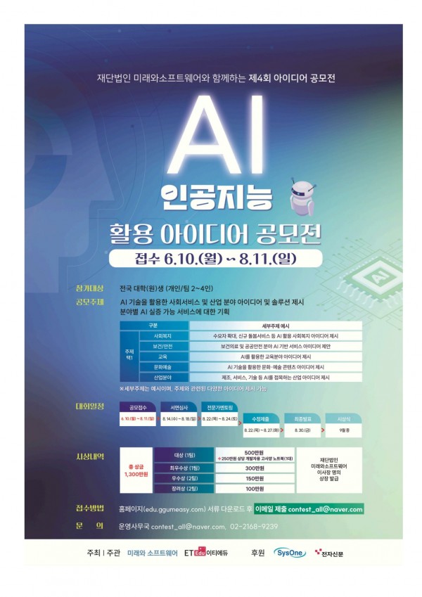 [홍보] AI 인공지능 활용 아이디어 공모전 (접수 : 6/10 ~ 8/11)