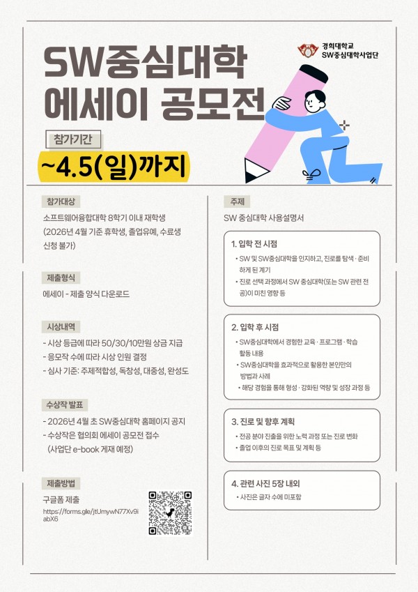[SW중심대학협의회] 2026 SW중심대학 에세이 공모전 (연장,~4/5까지)