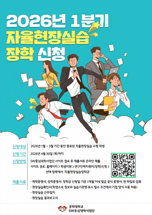 사이트경로: 홈페이지(https://swedu.khu.ac.kr) ->학생지원 ->연구인력지원비(장학) 신청 ->선택 항목에서 '자율현장실습장학금'