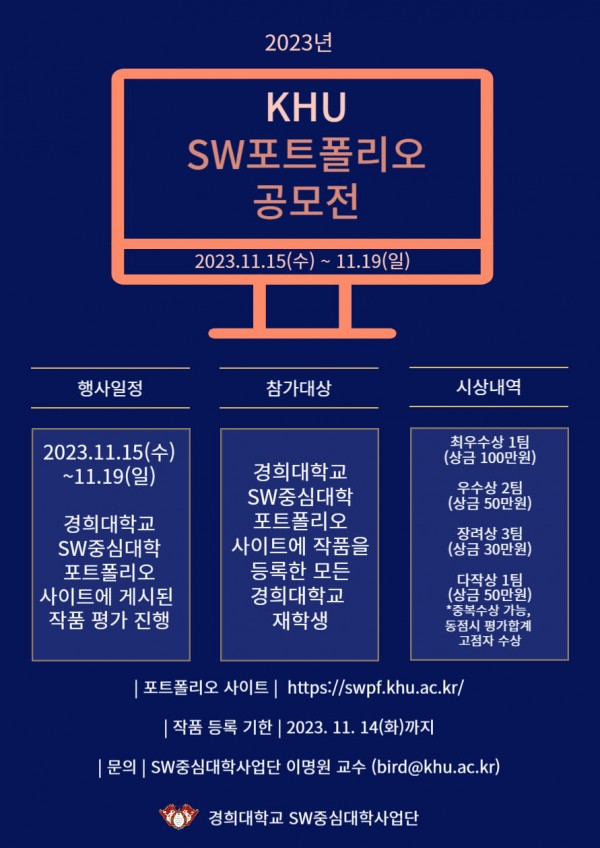 2023 KHU SW포트폴리오 공모전 안내(등록 ~11/14)