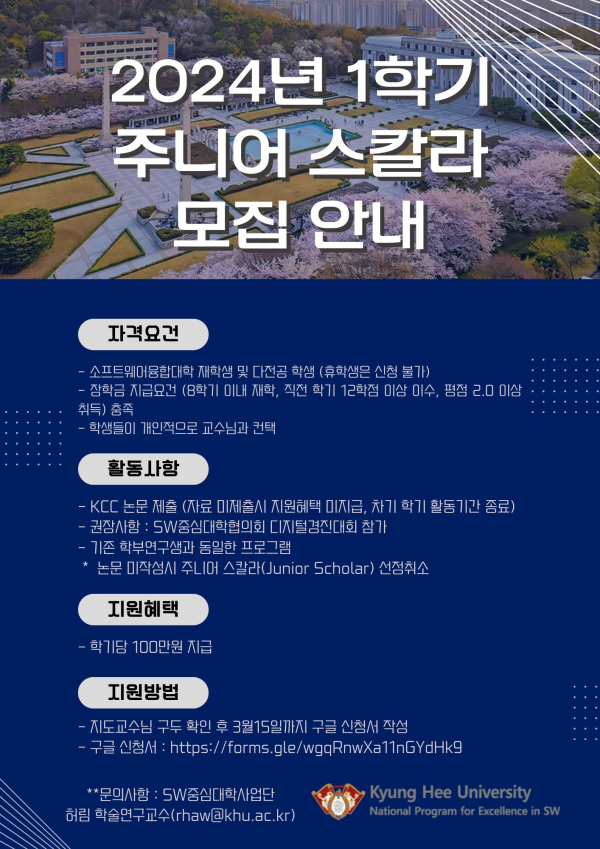 2024년 1학기 주니어 스칼라 모집 안내(~3/15)