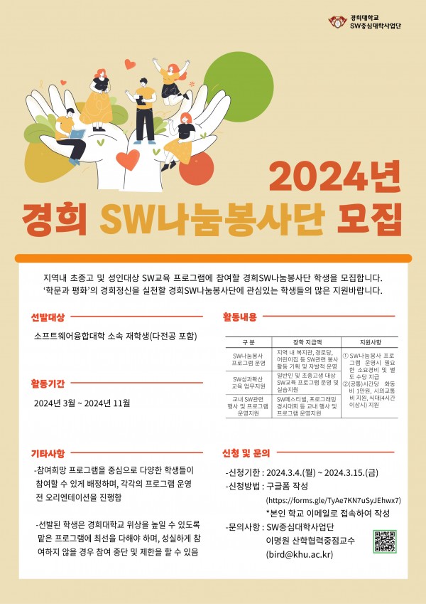 (기간 연장) 2024년 경희 SW나눔봉사단 모집(~3/22)
