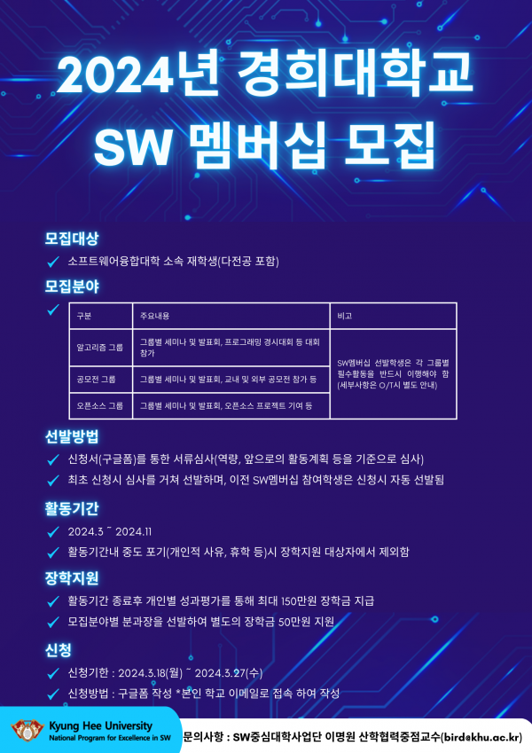 2024년 경희대학교 SW멤버십 모집 (~3/27)