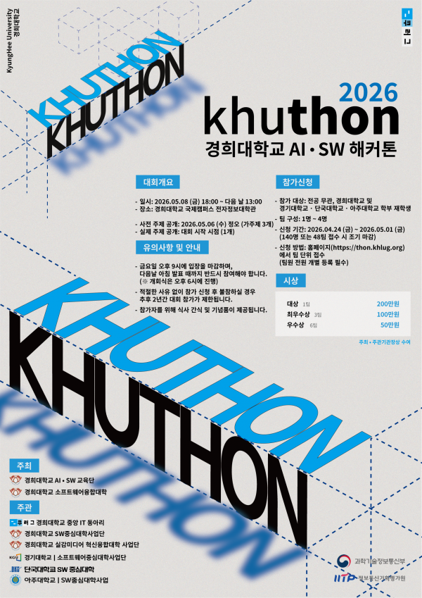 2026년 AI·SW 해커톤 「khuthon 2026」 안내 (신청: 4/24~5/1)