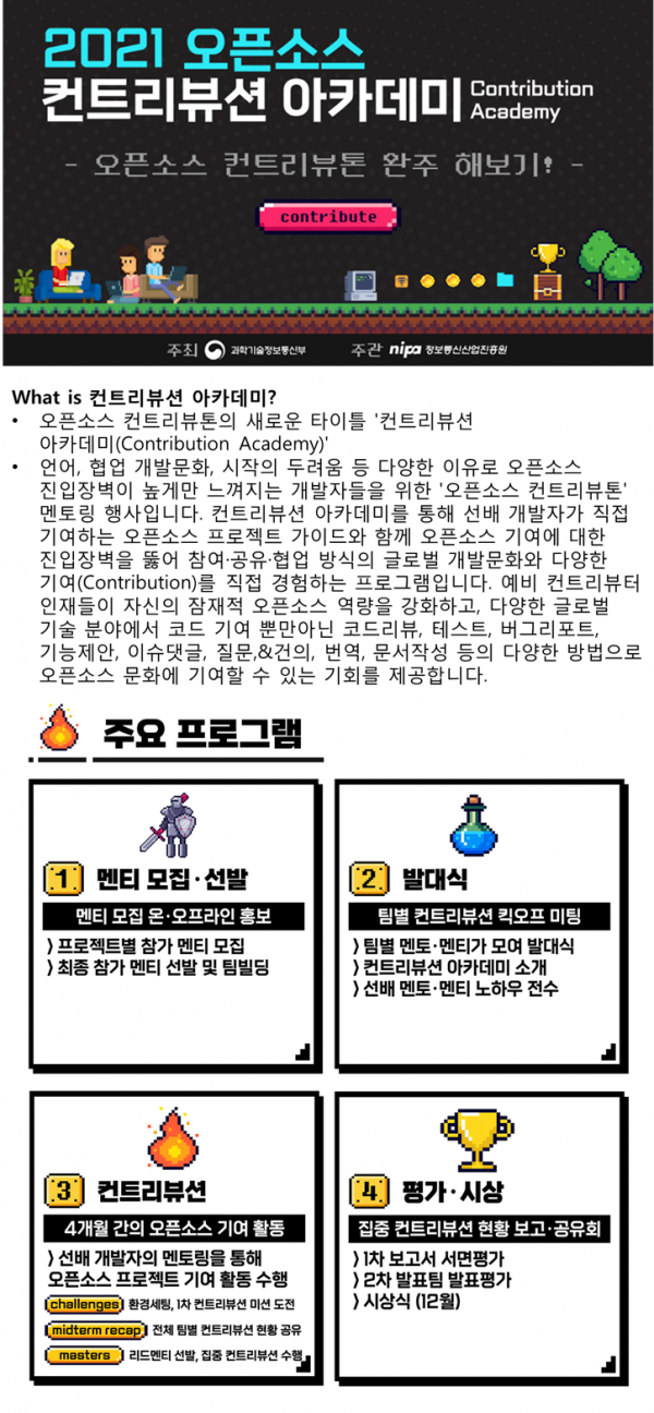 오픈소스 컨트리뷰션 아카데미 (참가신청:'21.07.05(월)~'21.07.26(월)/온라인접수)
