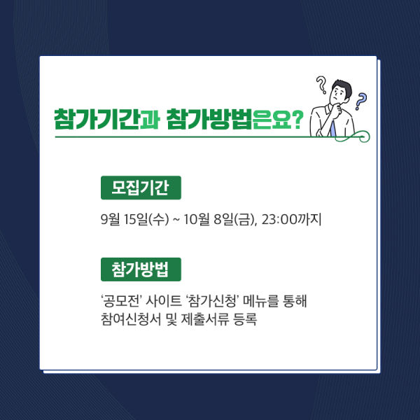 > 참가신청기간 : 09. 15(수)~10. 08(금) 18시까지