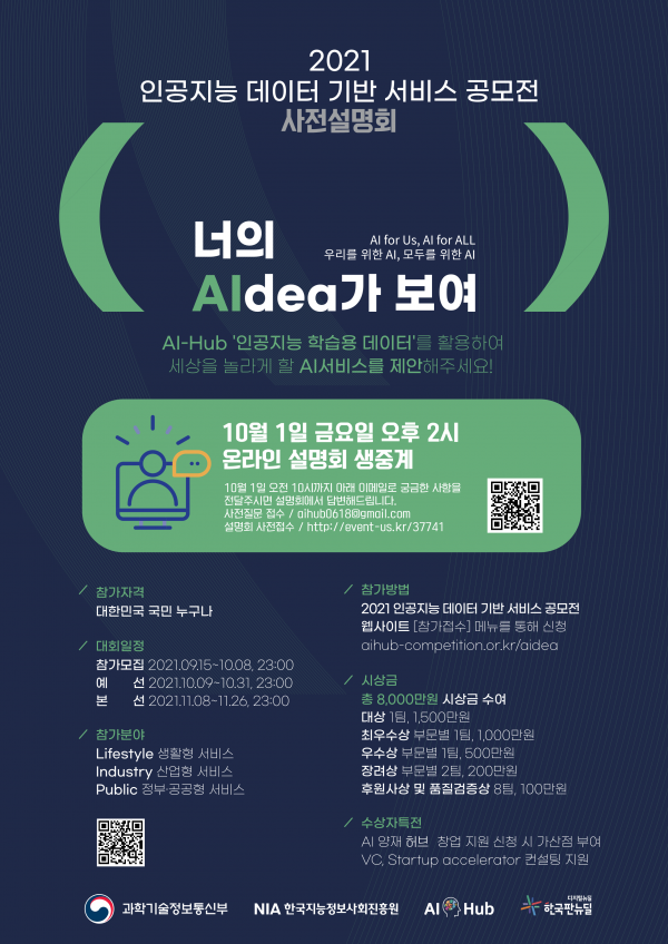 - 주최 : 과학기술정보통신부 / 한국지능정보사회진흥원 / AI Hub / 한국판 뉴딜