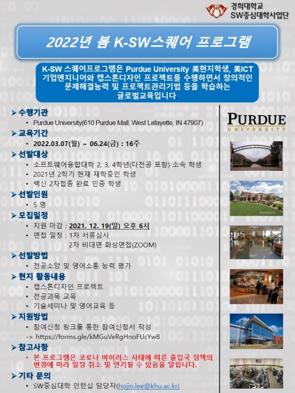 22년 K-SW 스퀘어 봄 프로그램 페이지 정보 작성자 SW중심대학 댓글 0건 조회 2,044회 작성일 21-12-16 09:50 본문 첨부파일 22년 K-SW스퀘어 봄 프로그램.pdf (646.6K) 208회 다운로드 | DATE : 2021-12-16 14:24:59 목록 이전글ICT 학점연계 프로젝트 인턴십 21.12.23 다음글2021- 동계 계절학기 수업도우미 모집 21.12.15 댓글목록 댓글목록 등록된 댓글이 없습니다.