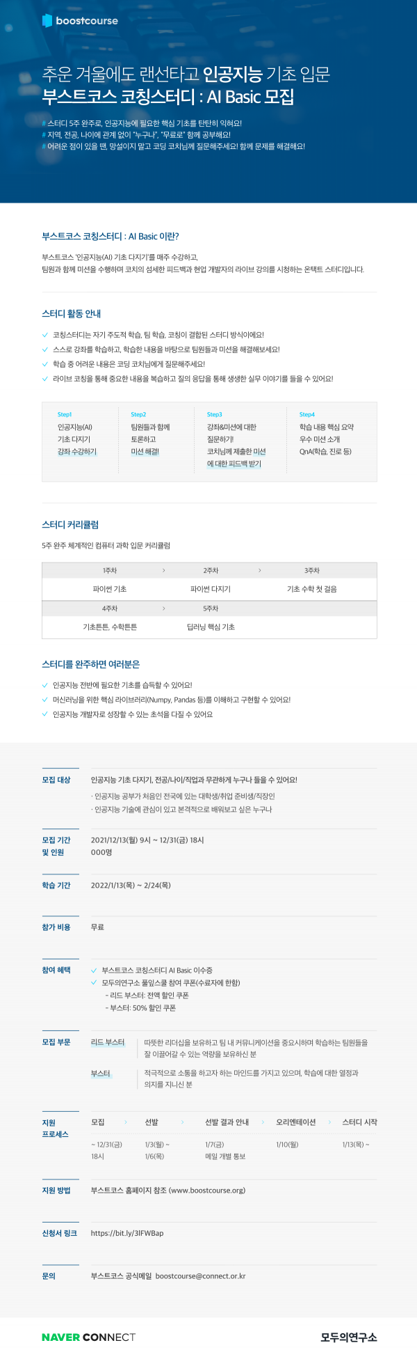 [네이버 커넥트재단] 부스트코스 인공지능 기초 코칭스터디 참가자 모집 (~12월 31일까지)