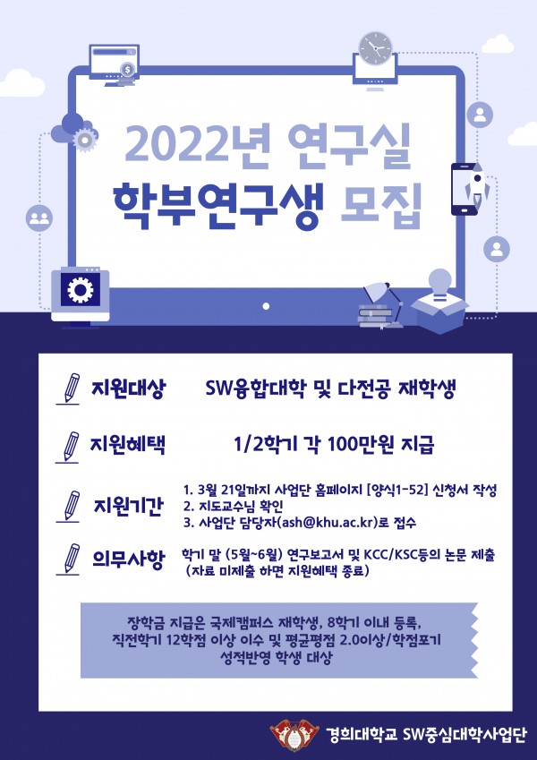 의무사항 : 학기 말 (5월~6월) 연구보고서 및 KCC/KSC등의 논문 제출 (자료 미제출 하면 지원혜택 종료)