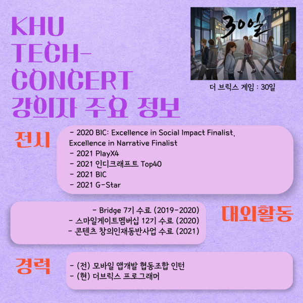 2022년 3월 KHU TECH-CONCERT 페이지 정보 작성자 SW중심대학 댓글 0건 조회 985회 작성일 22-03-21 16:12 본문 목록 이전글2022년 1학기 서버대여 안내 22.03.22 다음글[초중고생 대상] 2022년 1학기 온라인SW교육 신청 안내 22.03.14 댓글목록 댓글목록 등록된 댓글이 없습니다.
