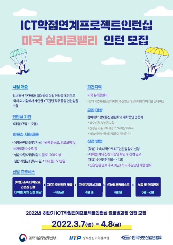 ICT와 협업을 통해 2022년 하반기 ICT 인턴십 글로벌과정 학생을 모집합니다.