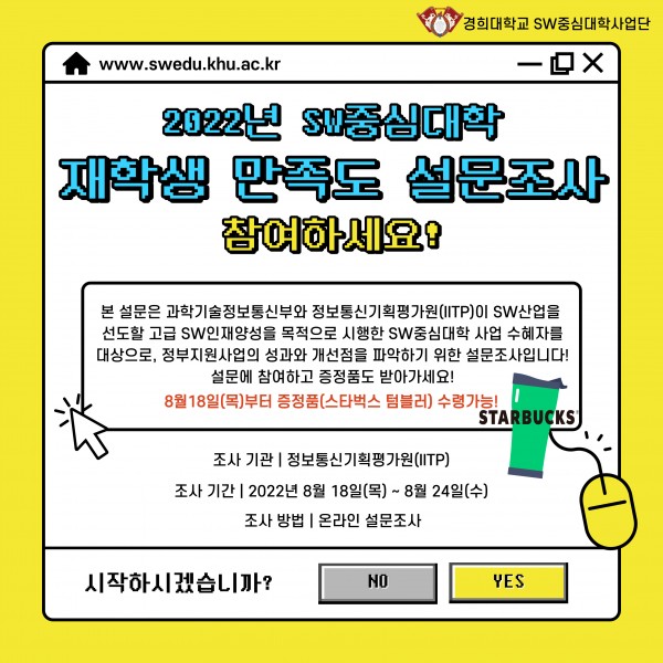 설문조사 결과는 IITP의 IT/SW인력양성사업의 성과분석 기초자료로 활용되며, 그 외 목적으로는 활용되지 않습니다.