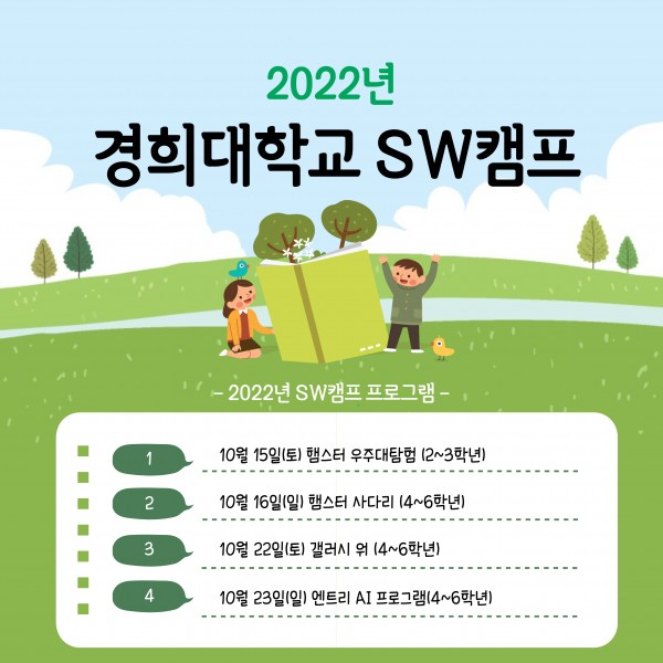 경희대학교 SW중심대학사업단에서는 무료 SW캠프를 개최합니다.