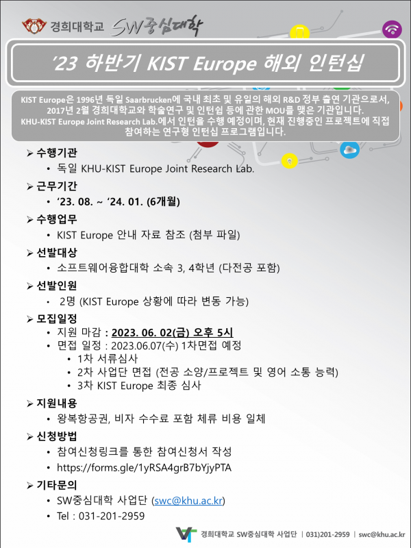 2023년 하반기 KIST Europe 해외인턴십 신청 안내