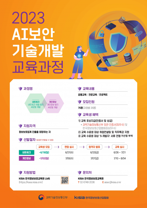 [KISIA] 2023 AI보안 기술개발 교육과정 - 네트워크반 / 개인정보반 교육생 모집