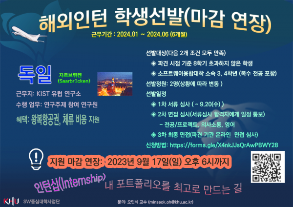 (우선 2023년 하반기 KIST Europe 인턴연구원 선발공고문을 참조하되,