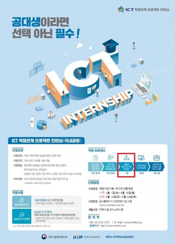 2019년도 상반기 ICT 학점연계 프로젝트 인턴십 국내과정 운영 안내