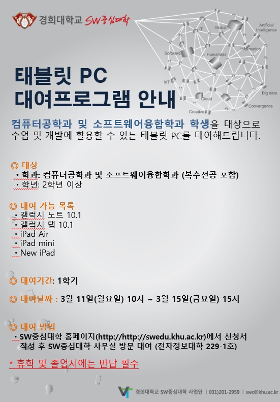경희대학교 SW중심대학사업단에서 태블릿PC 지원을 안내하여 드립니다.