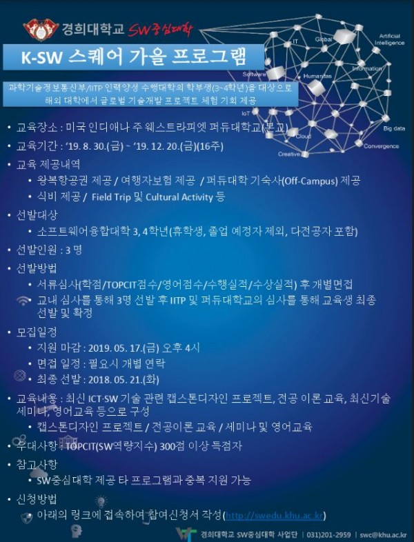 2. 교내 심사를 통해 3명 선발 후 IITP 및 퍼듀대학교의 심사를 통해 교육생 최종 선발 및 확정