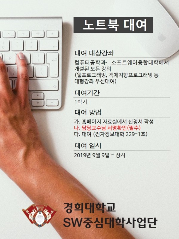 1) 대여 대상강좌 : 컴퓨터공학과 및 소프트웨어융합대학에서 개설된 모든 강의(웹프로그래밍,객체지향 등 대형강좌 우선대여)
