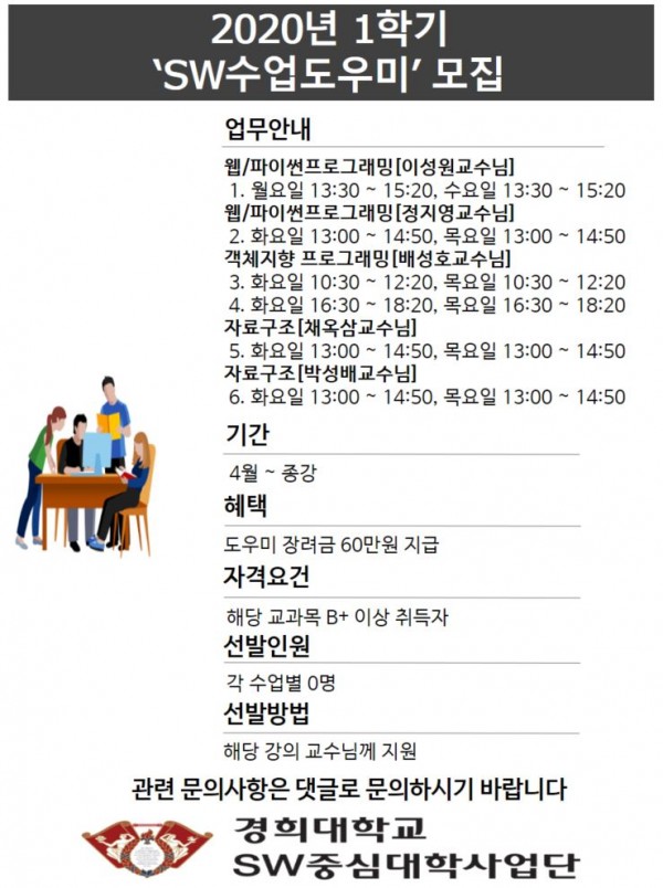 '20년 1학기 SW수업도우미 모집