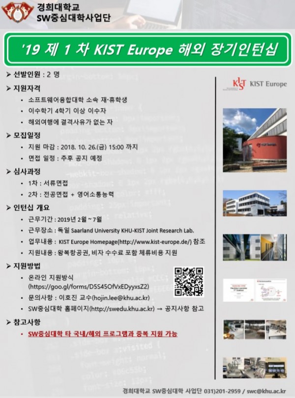 2019년 제 1차 KIST Europe 해외 장기인터십 선발 공고
