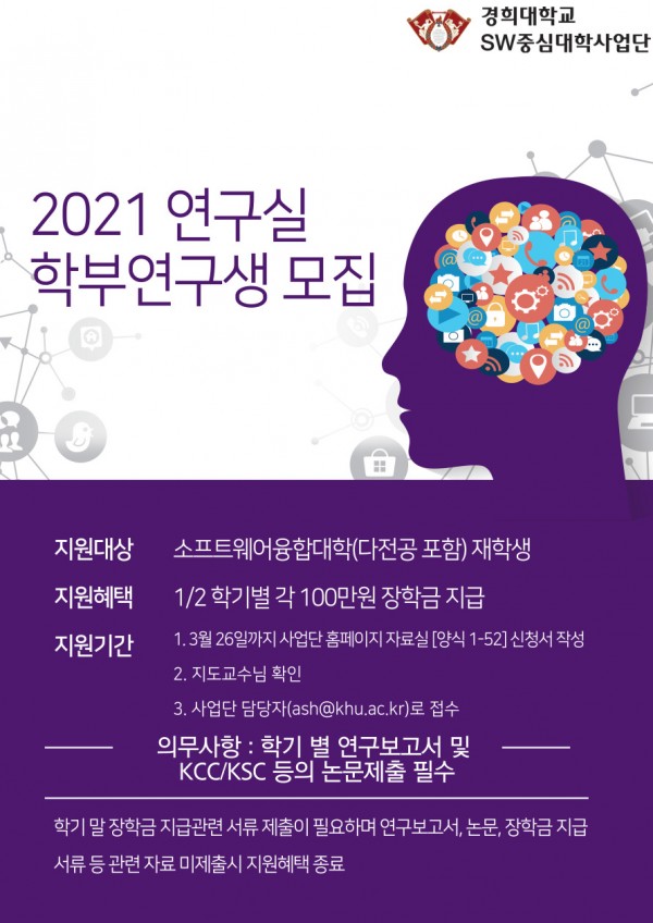 지원 기간 : 3월 26일까지 사업단 홈페이지 [양식1-52] 신청서 작성 후 지도교수님 확인 후 사업단 담당자 메일(ash@khu.ac.kr)로 접수