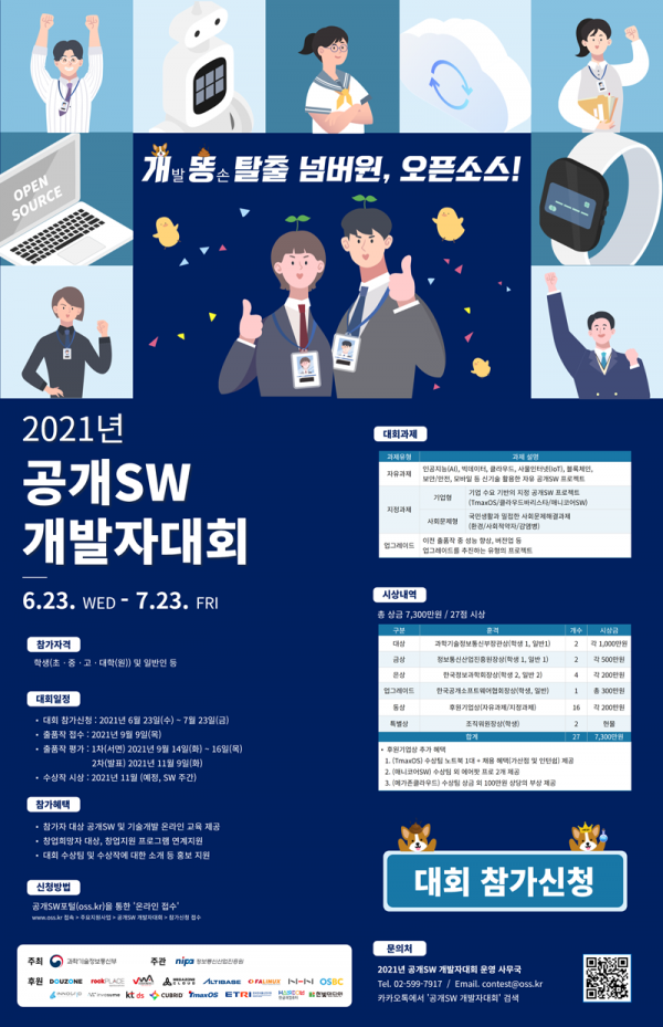 2021 공개SW 개발자대회 (참가신청 : '21.6.23.(수)~7.23.(금) / 온라인 접수)