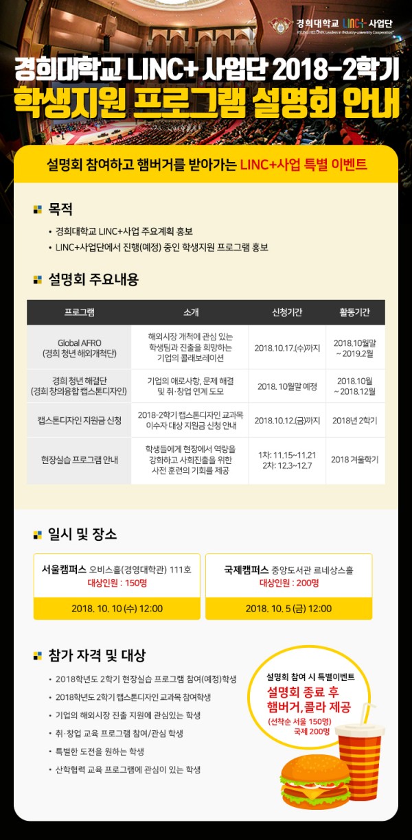 LINC+사업단 2018년 2학기 학생지원 프로그램 설명회 안내