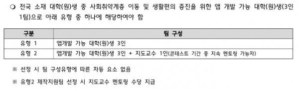 - 취약계층 관련 문의: 카카오톡 채널 ‘배리어프리 앱개발 콘테스트’ 검색 후 질문을 남겨주세요.