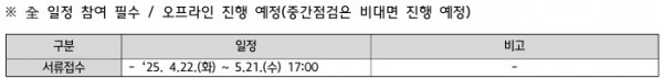 - 공모기간 : 4.22.(화) ~ 5.21.(수) 17:00까지 (조기 접수 가산점 부여)
