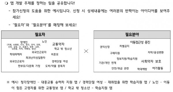 - 공모분야 : 사회취약계층 ‘이동 및 생활 편의 증진’과 관련된 주제