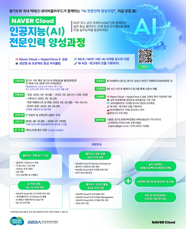 [홍보] [네이버클라우드] 경기도경제과학진흥원(GBSA) 네이버클라우드 인공지능 전문인력 양성과정