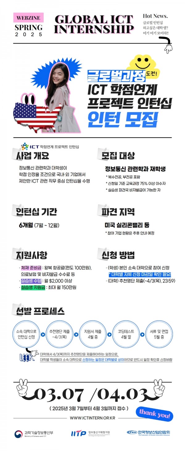 [인턴] 2025년 하반기 ICT학점연계 해외인턴십 모집 안내(소프트웨어융합대학) (~3/31)