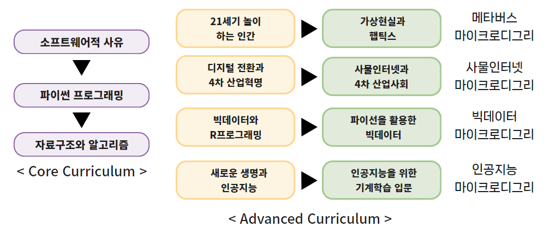 -Core 커리큘럼 및 트랙별 Advanced 커리큘럼 선택이수 완료시, 메타버스, 사물인터넷, 빅데이터, 인공지능 각각의 마이크로디그리 수여