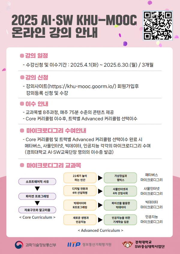 2025년 AI·SW KHU-MOOC 온라인 강의 안내 (4.1 ~ 6.30)