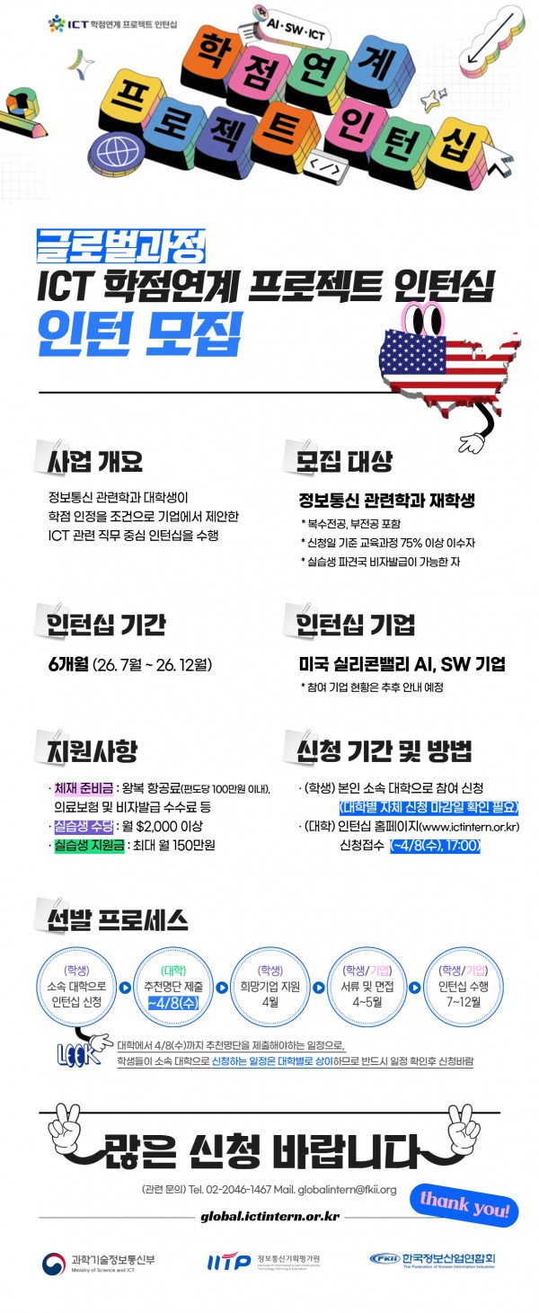 [정부지원 2026년 하반기 ICT 학점연계 프로젝트 인턴십 글로벌과정 모집안내]