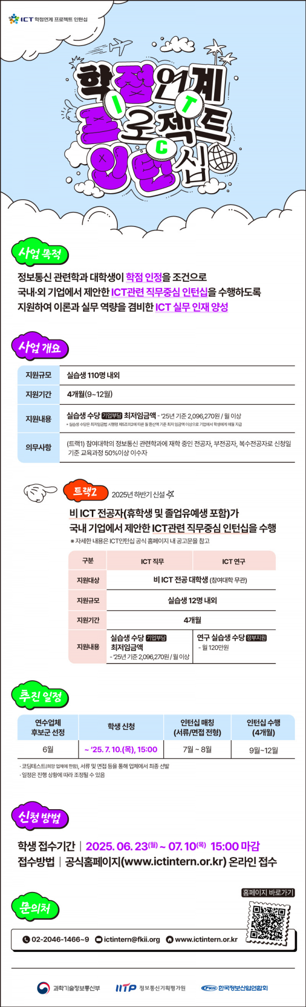 [공지] 2025년 하반기 ICT 학점연계 프로젝트 인턴십 국내과정 학생 모집 사전 안내