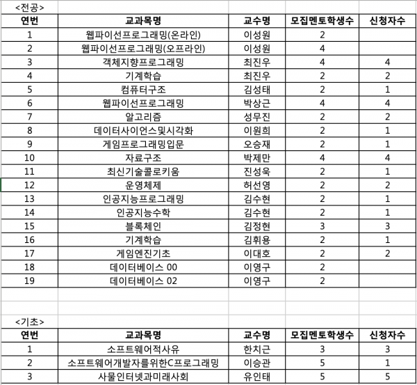 - 학생들이 개인적으로 교수님과 컨택