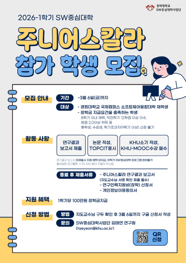 2026년 1학기 주니어스칼라 모집 안내 (~3/6까지)
