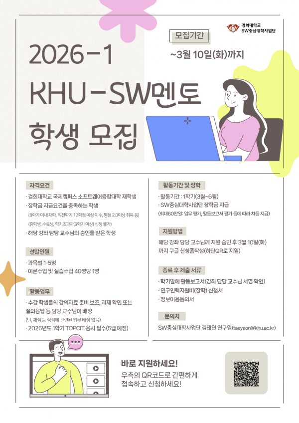 [2026년 1학기 KHU-SW멘토 학생 모집]