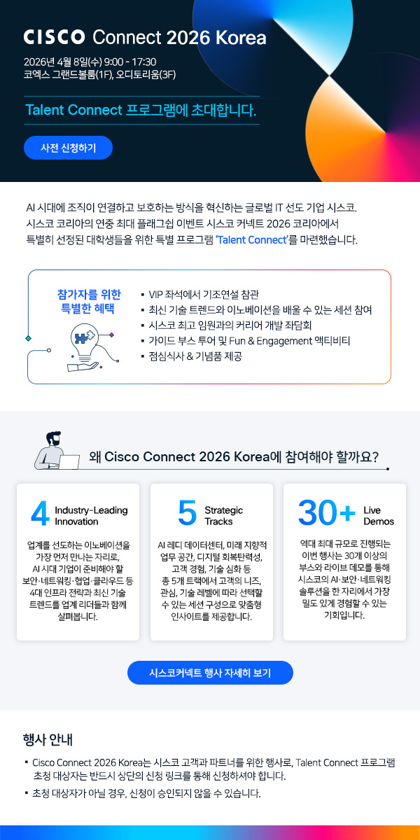[홍보] 시스코 커넥트(시스코 코리아의 연례 행사) 학생 추천 안내