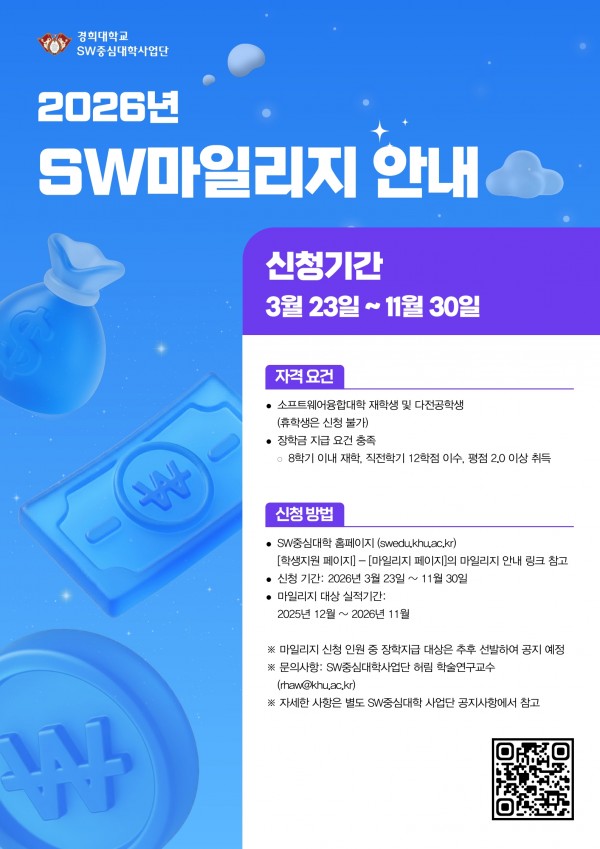 ※ 문의사항 : SW중심대학사업단 허림 학술연구교수 (rhaw@khu.ac.kr)